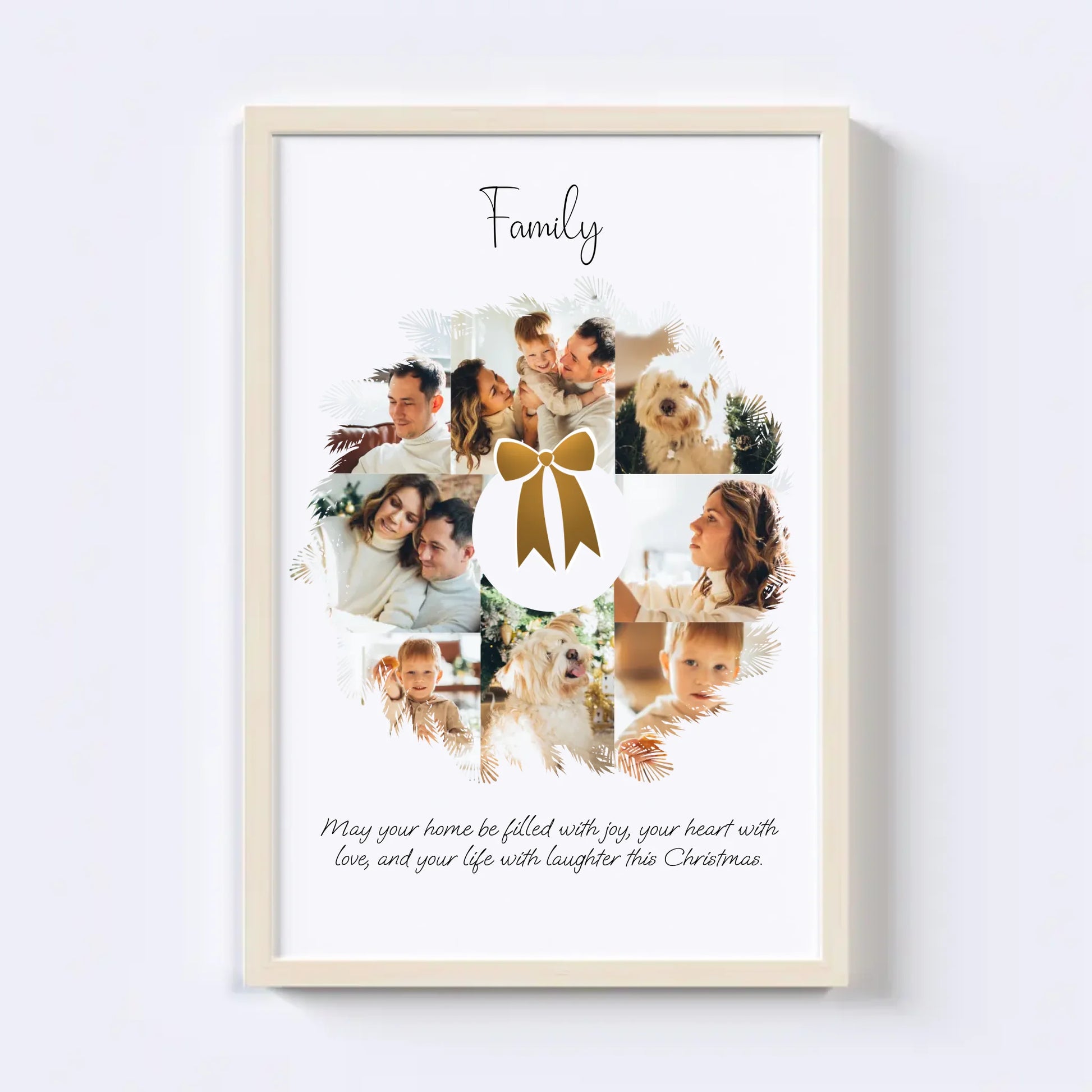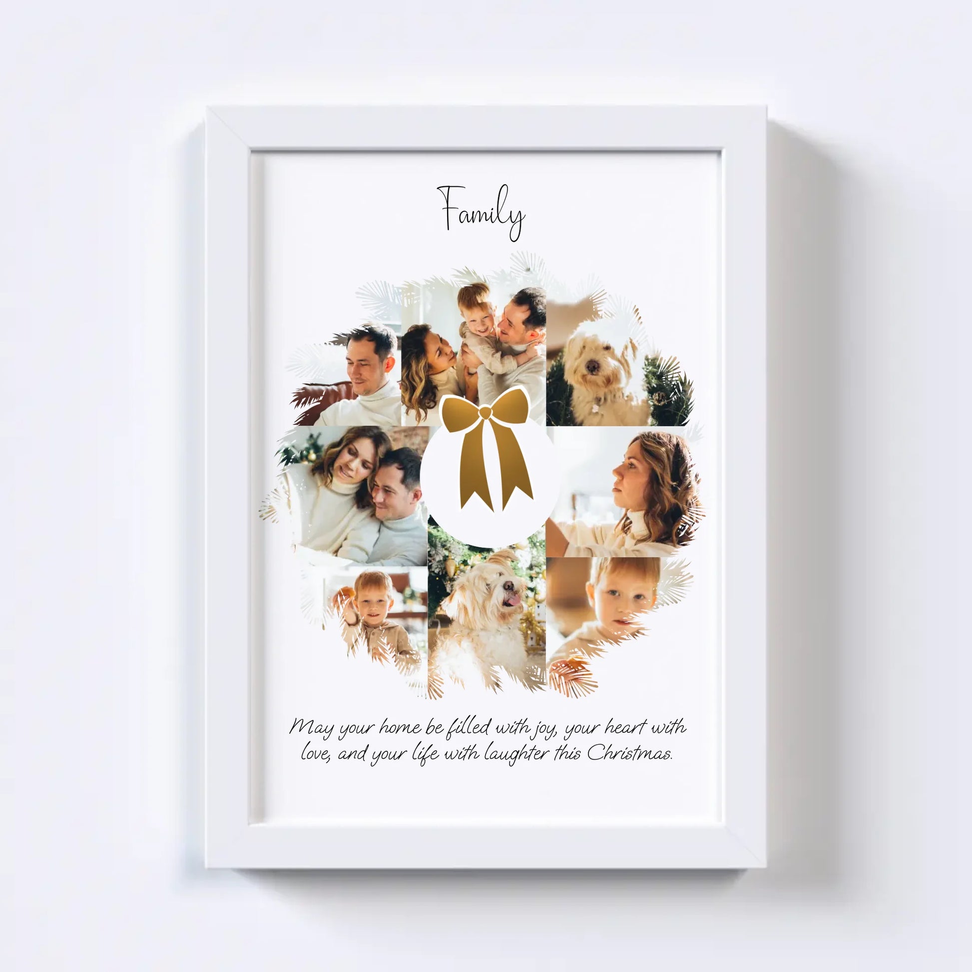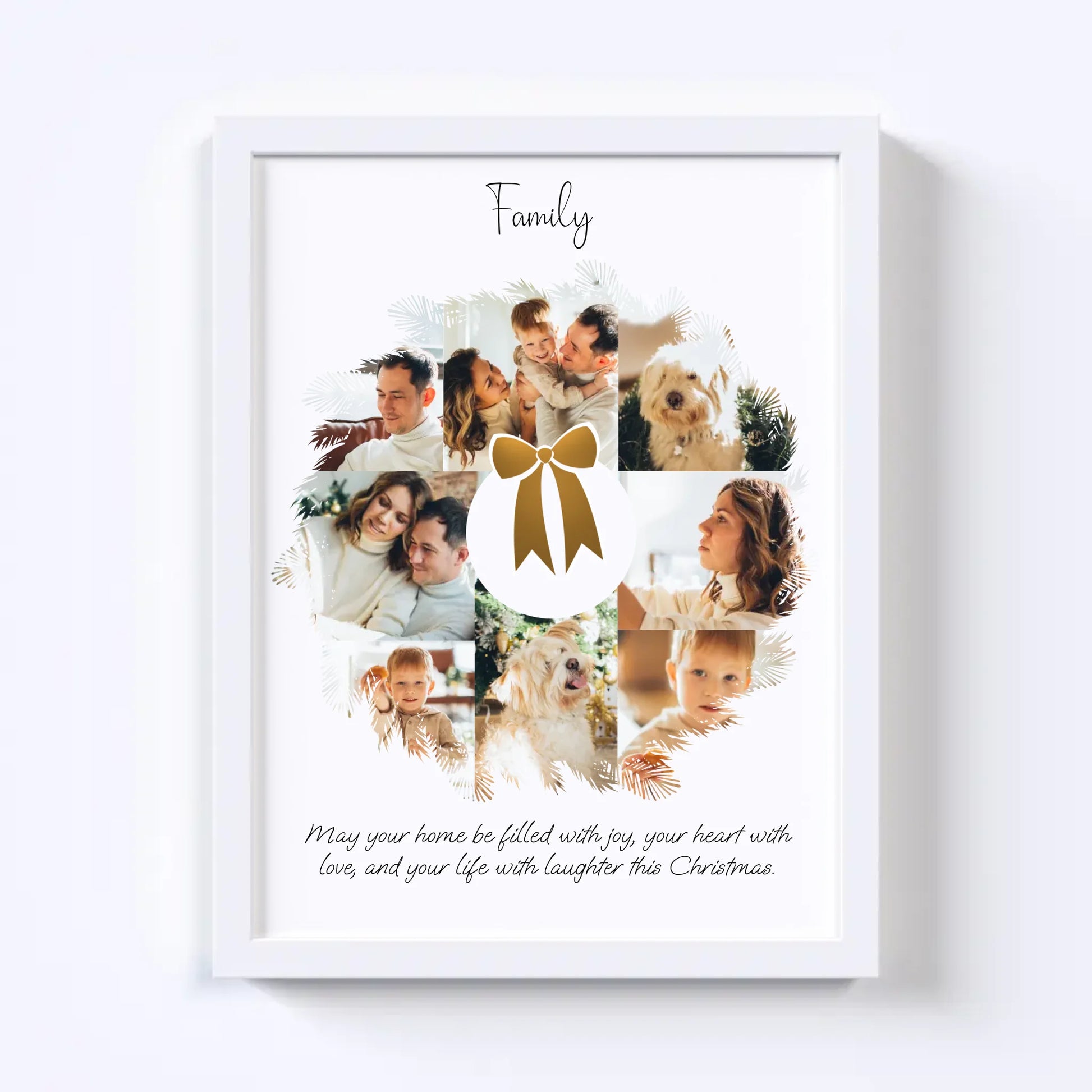Give a unique and heartfelt Christmas gift that also serves as a wonderful decoration for your home. Create your own Christmas wreath-shaped photo collage to add intimacy and memorability to the holiday season.