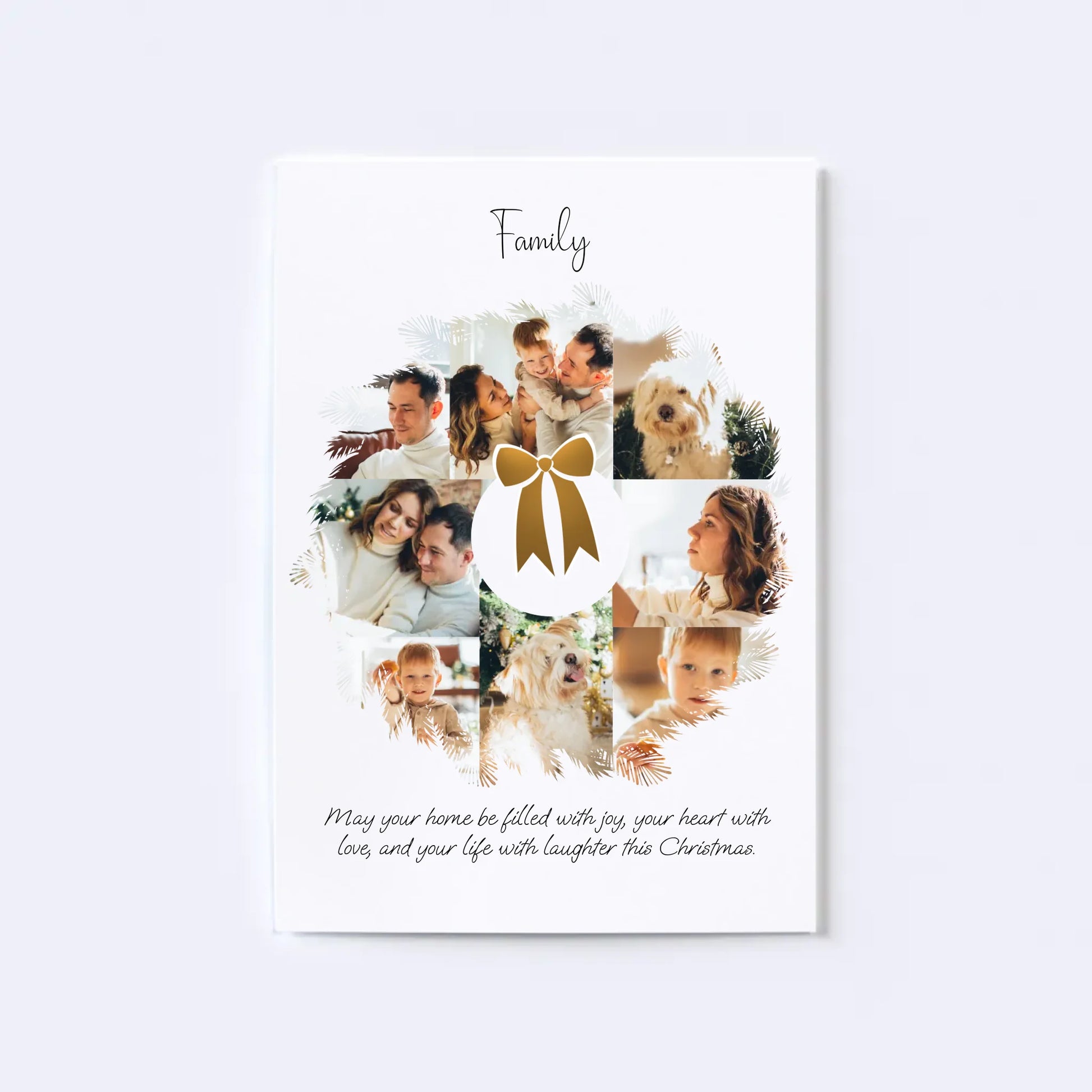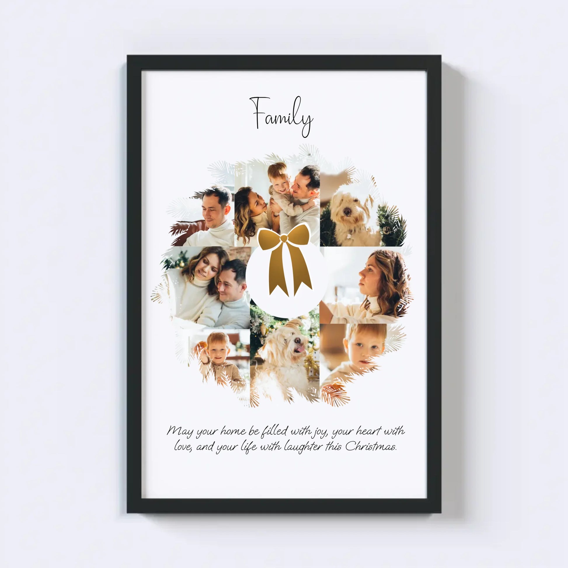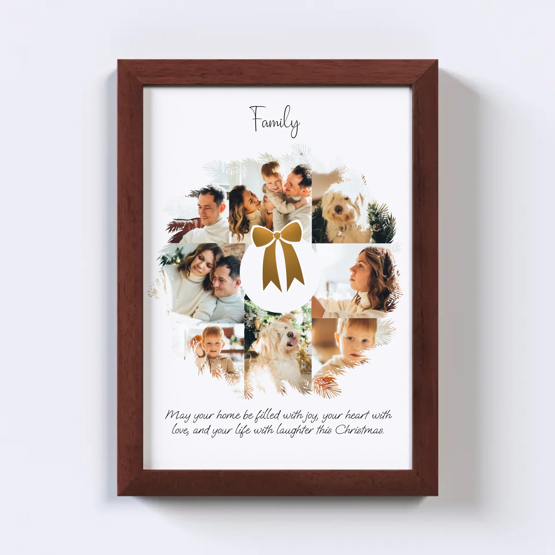 Give a unique and heartfelt Christmas gift that also serves as a wonderful decoration for your home. Create your own Christmas wreath-shaped photo collage to add intimacy and memorability to the holiday season.