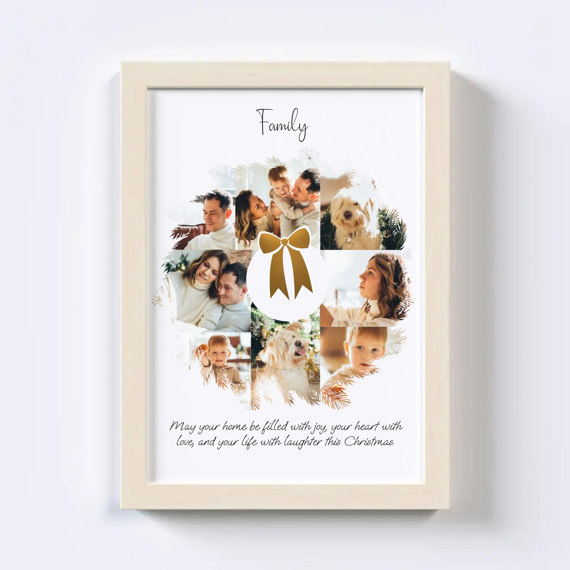A Christmas wreath-shaped photo collage is a unique and special gift idea for the holidays. This product is not only a decorative accessory, but also a valuable keepsake that brings festive cheer and brings your loved ones closer together.