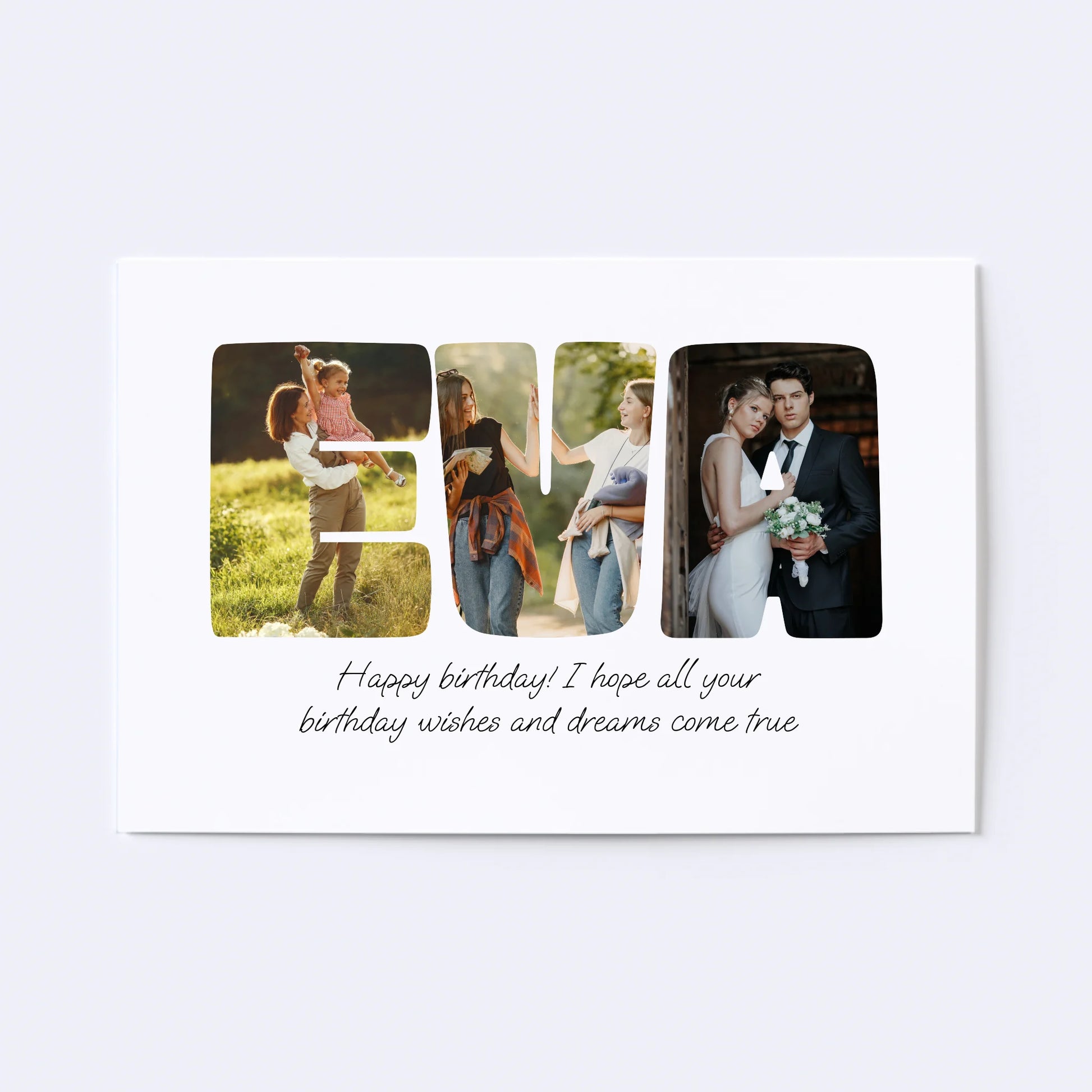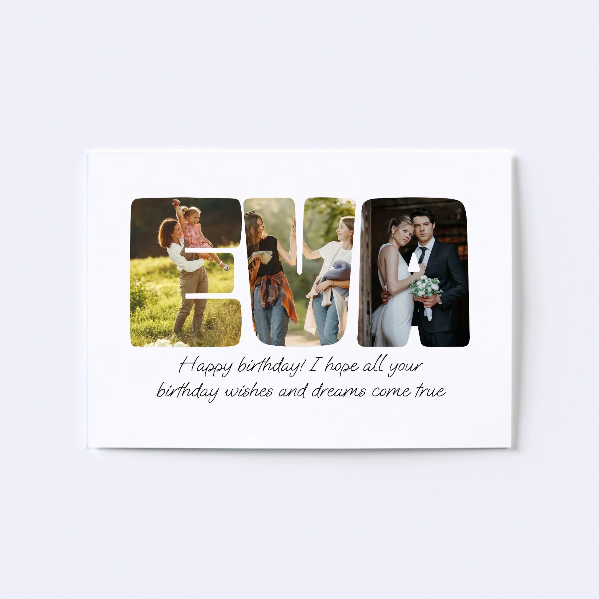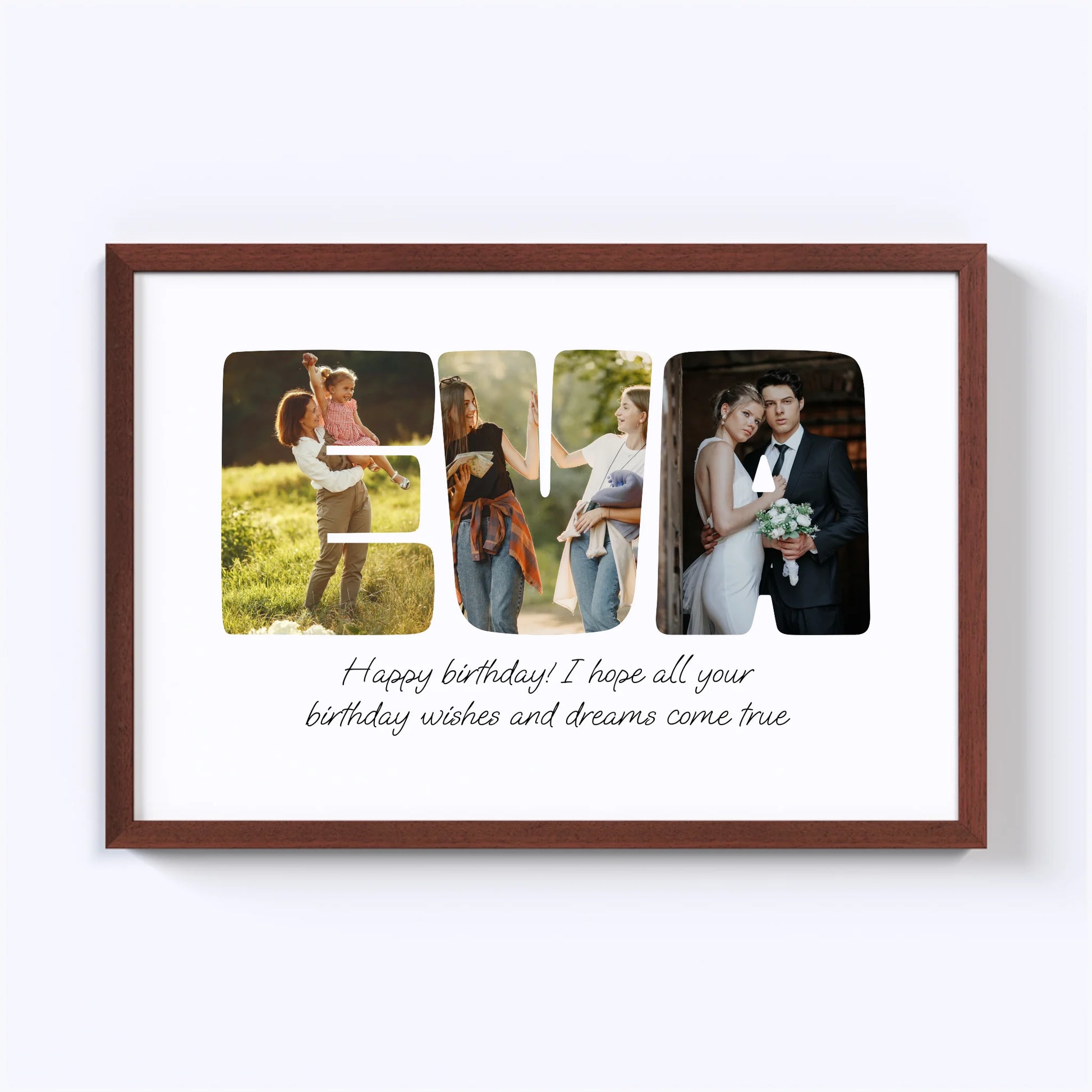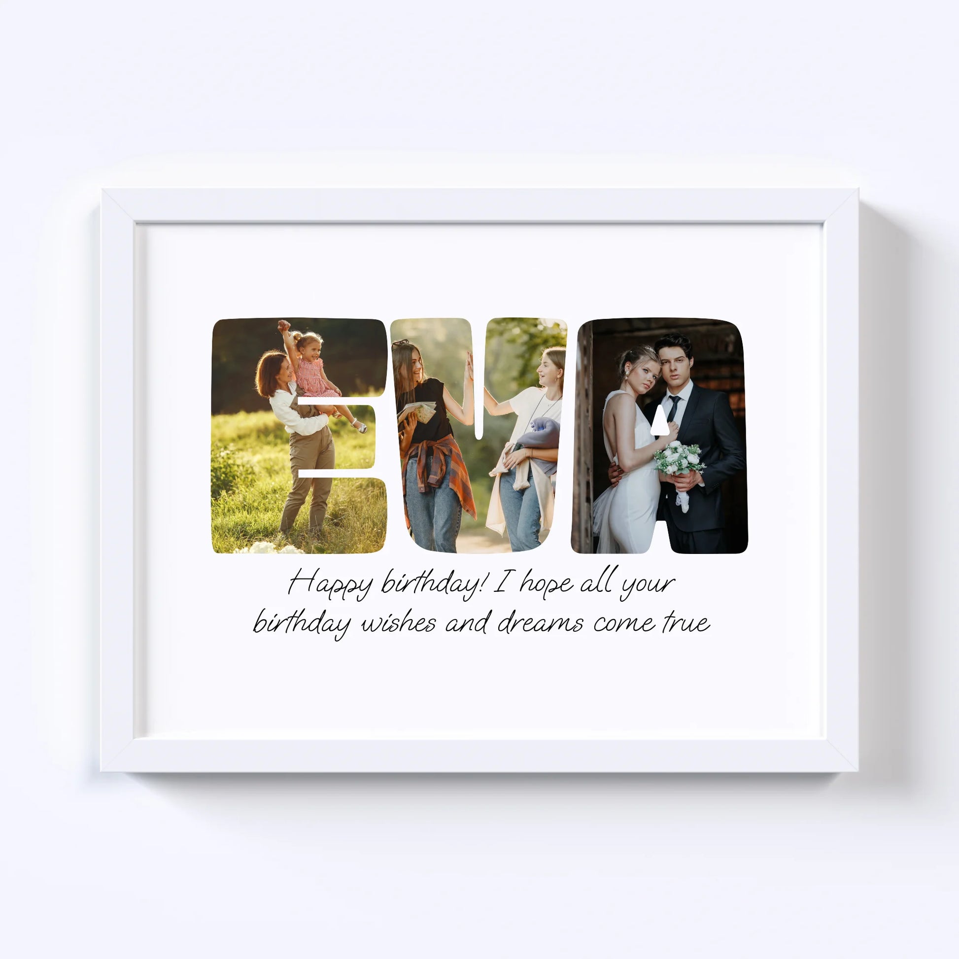 Geef een gepersonaliseerde collage cadeau! Onze op maat gemaakte Word-fotocollage maakt van elke speciale boodschap een kunstwerk. Laat uw dierbaren zien hoeveel u om hen geeft door een naam, een bevestigend woord of een favoriete zin met foto's te spellen. De perfecte manier om elke gelegenheid onvergetelijk te maken!