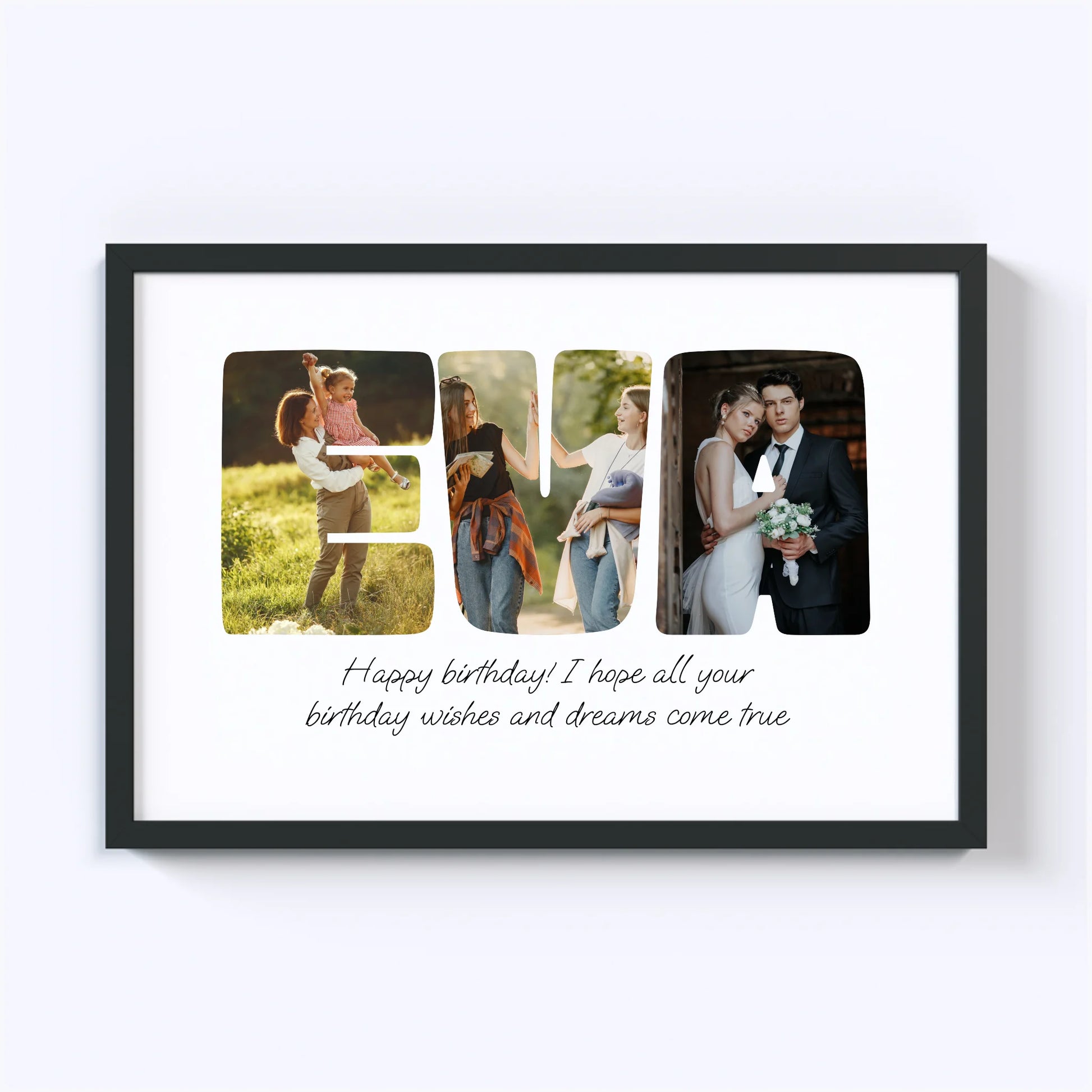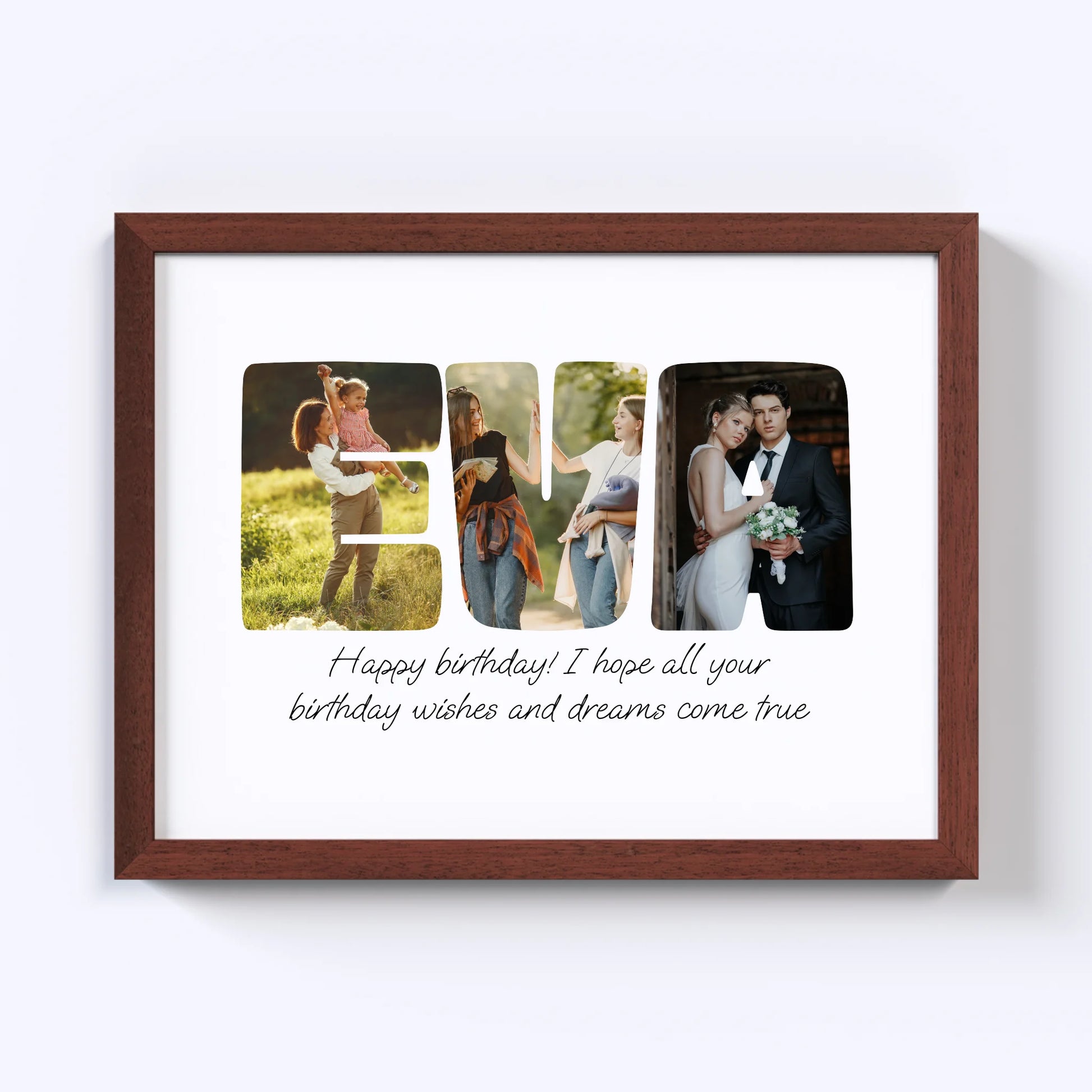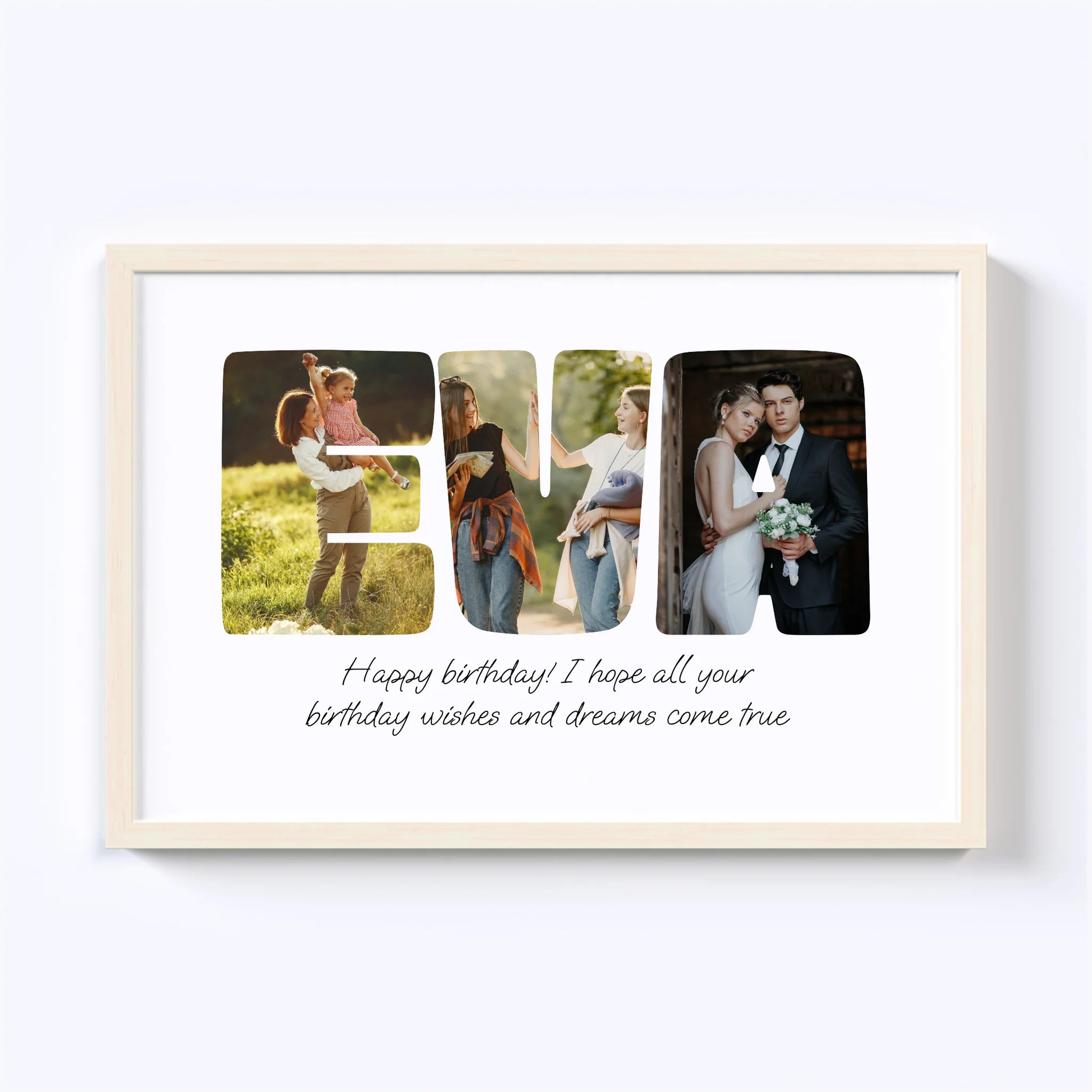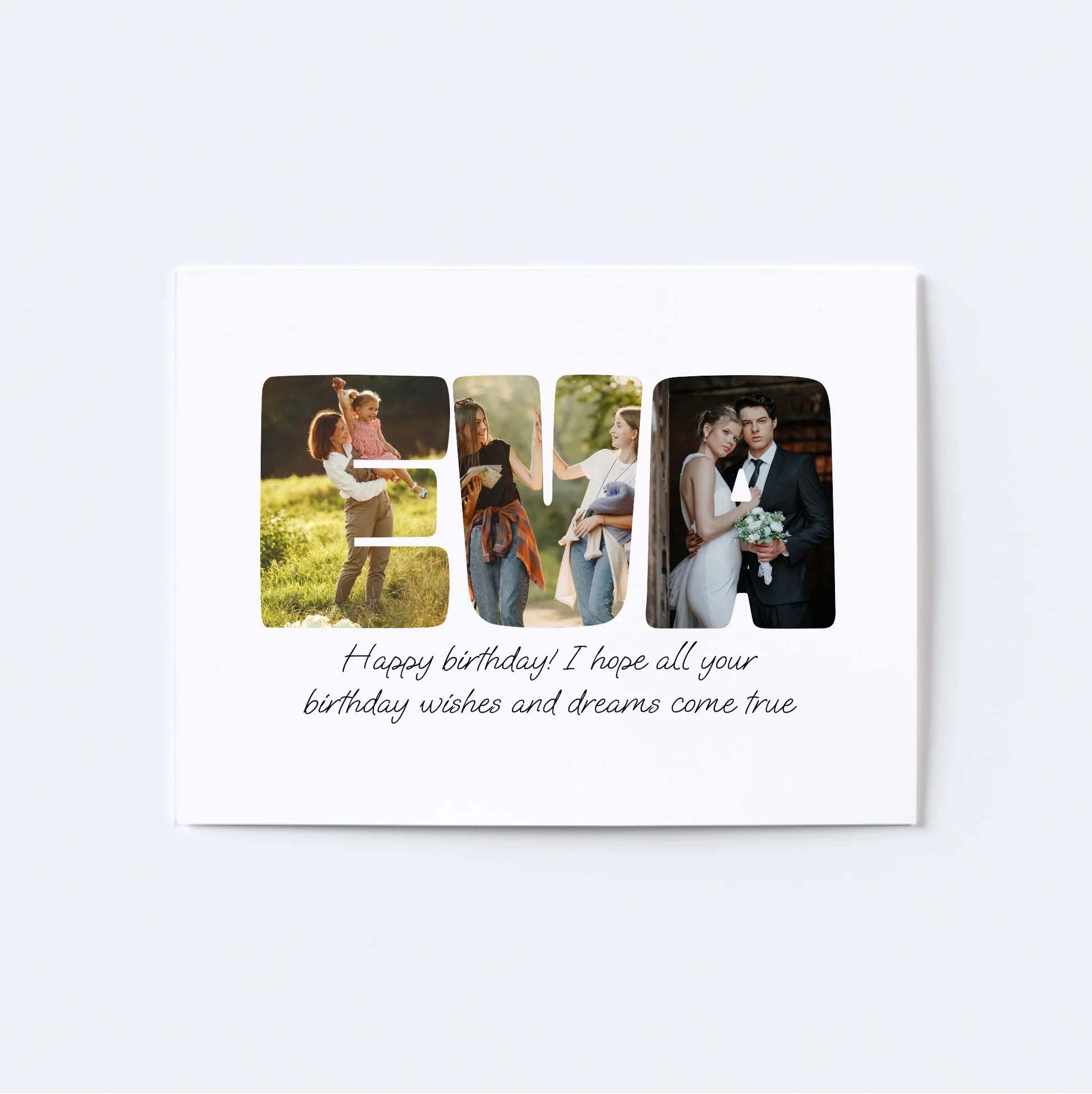 Geef een gepersonaliseerde collage cadeau! Onze op maat gemaakte Word-fotocollage maakt van elke speciale boodschap een kunstwerk. Laat uw dierbaren zien hoeveel u om hen geeft door een naam, een bevestigend woord of een favoriete zin met foto's te spellen. De perfecte manier om elke gelegenheid onvergetelijk te maken!